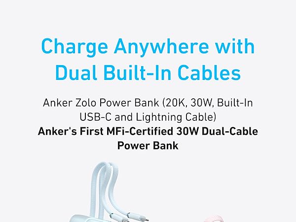 Anker Zolo Power Bank (20K, Built-In USB-C and Lightning Cable)