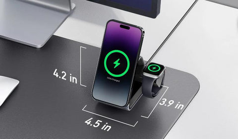 - Finally, the Anker 544 Wireless Charger (4-in-1 stand), is the perfect companion for the tech-savvy person who's constantly juggling multiple devices and needs an all-in-one charging solution. The Anker 544 lets you easily charge up to 4 devices at once, with two wireless charging surfaces, a lightning connector dock, and an 18W USB-C port for fast-charging. It works well with Apple Watch Series 1-7.