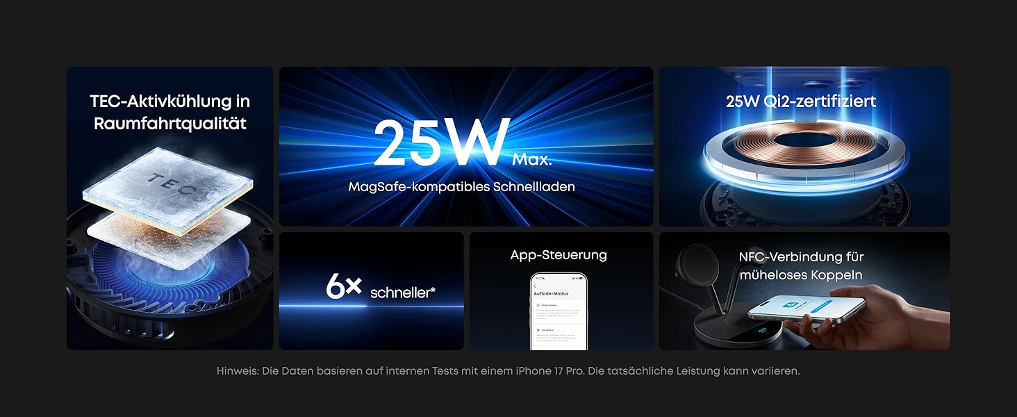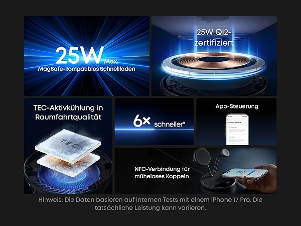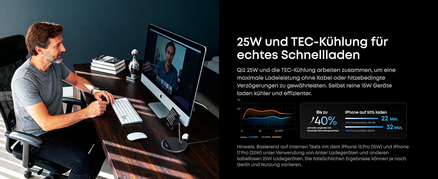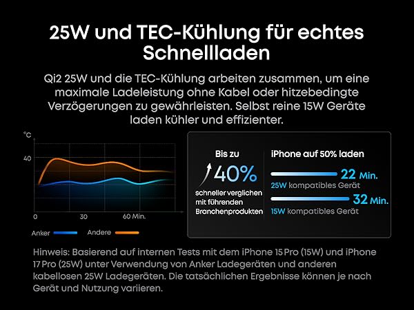 Next-Level Speed Built with the latest Qi2 25W module, Anker Prime wireless product delivers a powerful 25W magnetic wireless charging that pushes your iPhone 17 Pro to 50% in just 22 minutes.