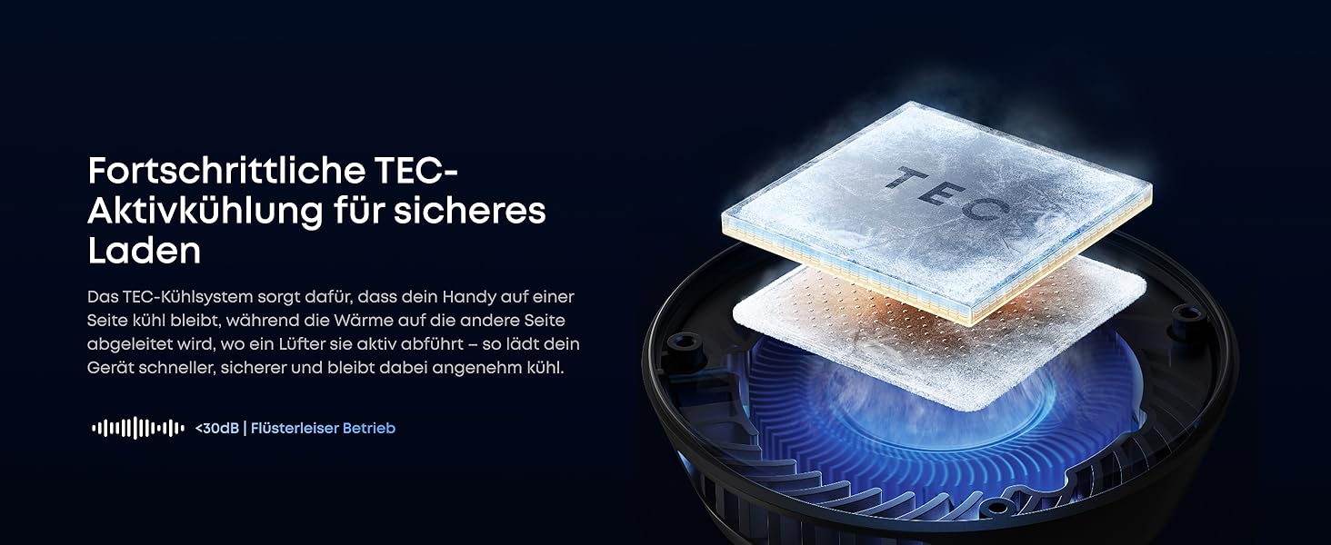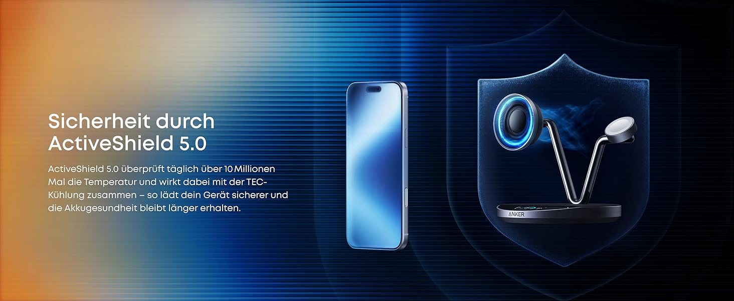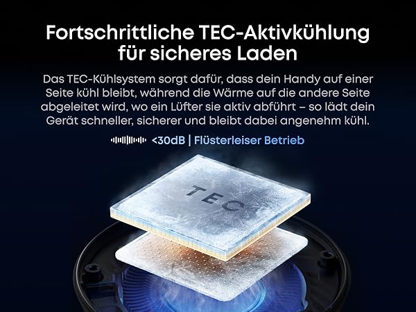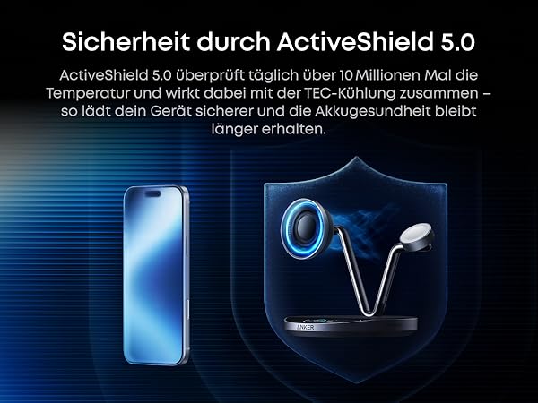 Cool and Protected With a powerful combination of TEC active cooling and ActiveShield 5.0 safety system, the charging station keeps your iPhone cool throughout charging. It performs over 10 million real-time safety checks per day to protect your battery and maintain optimal charging performance.