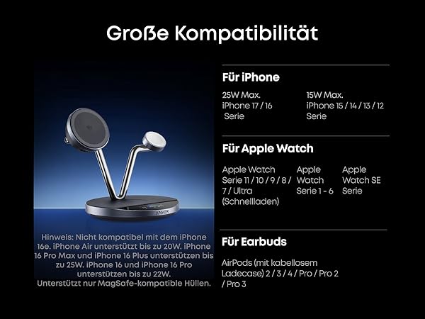 Compatibility (iPhone) 25W Max: iPhone 17 / 16 Series