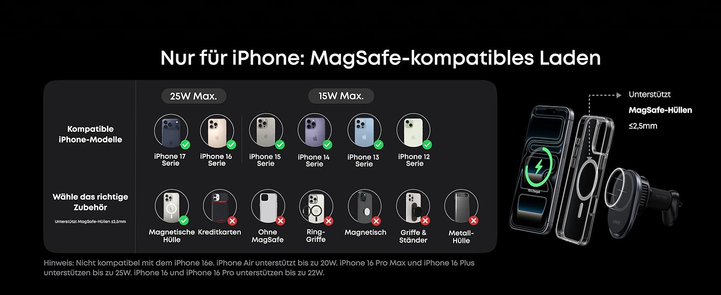 Kompatibilität iPhone 17 / 16 / 15 / 14 / 13 / 12 Serie;Und weitere Geräte