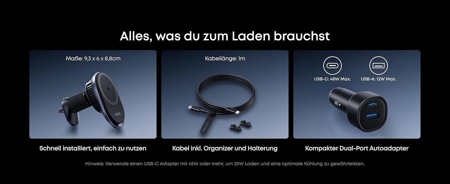 Anker Prime Kabelloses Kfz-Ladegerät (MagGo, AirCool, Pad)