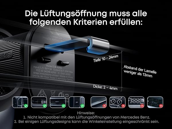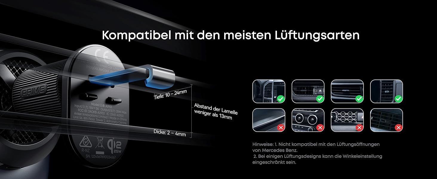 Modellnummer A2933  Anker Prime kabelloses Kfz-Ladegerät (MagGo, AirCool, Pad);Kabelgeschwindigkeit trifft kabellose Freiheit.