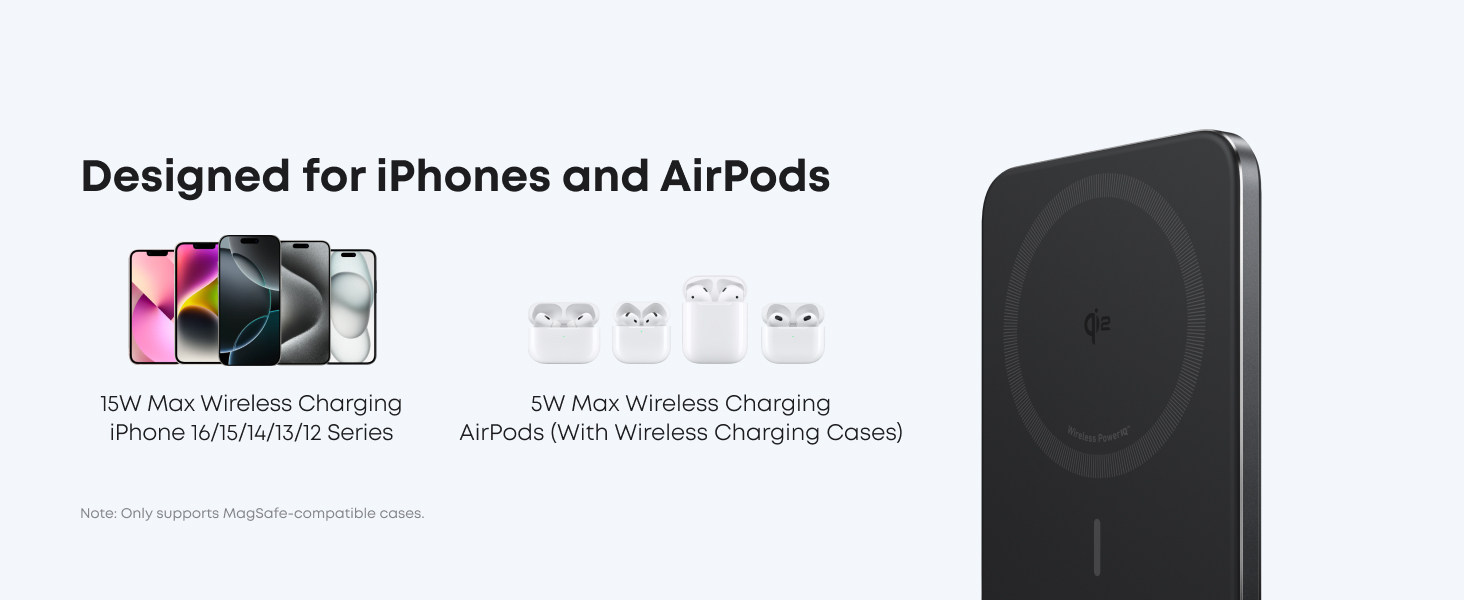 • Enhanced Safety and Speed: Offering high-speed charging and enhanced safety, the power bank features Qi2 MagSafe compatibility, continuous battery protection, and powerful 20W Max USB-C charging.