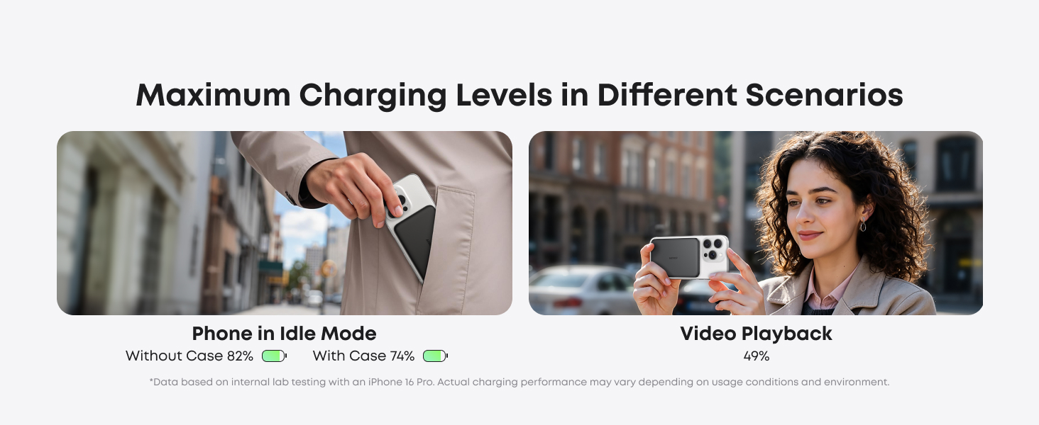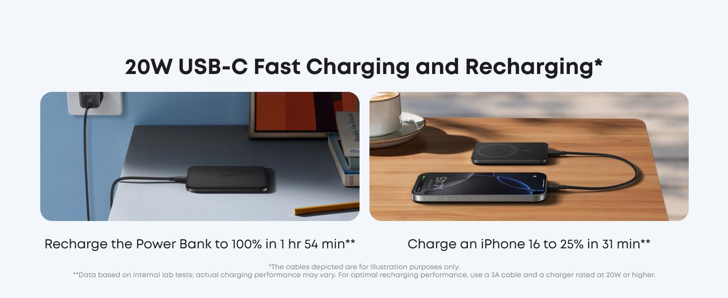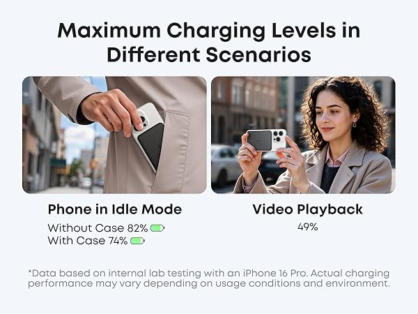 • 15W MagSafe-Compatible Charging: With 15W Max MagSafe-compatible fast charging, Anker Nano Power Bank provides high efficiency for mobile charging, quickly powering up an iPhone 16 Pro to 25% in just 42 minutes. (Data based on internal lab tests; actual charging performance may vary.)