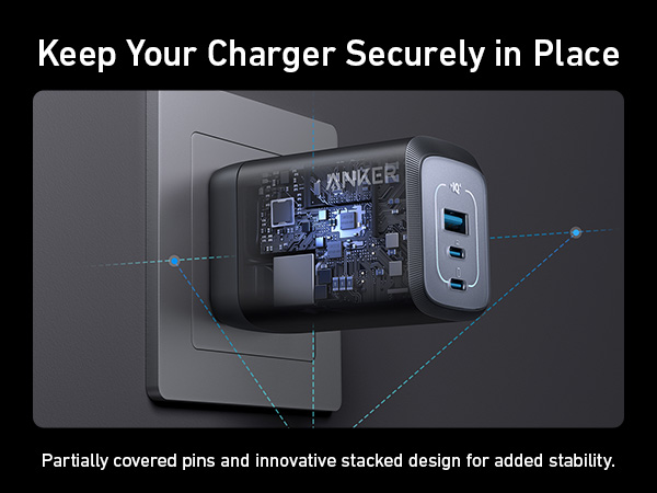 Keep your charger securely in place with the help of partially covered pins and an innovative stacked design, providing added stability for worry-free charging.