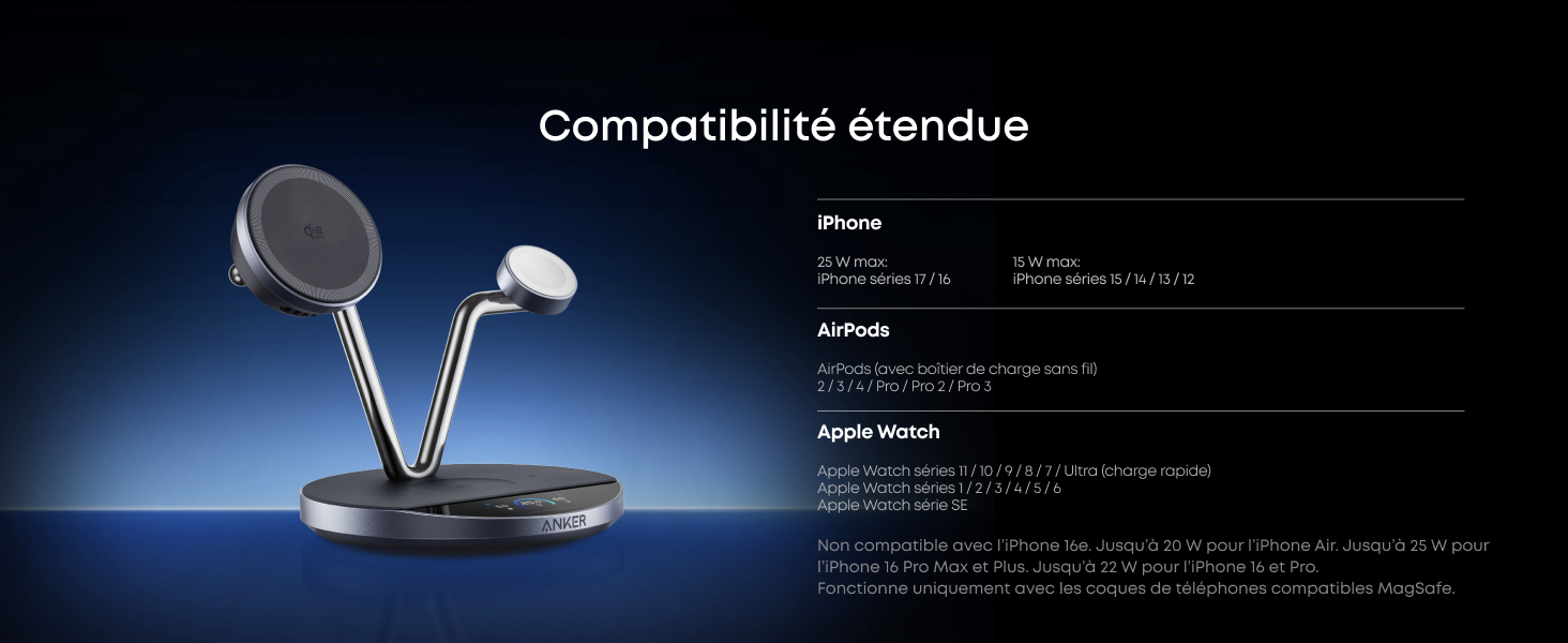 Station de charge sans fil Qi2 Anker Prime (3-en-1)