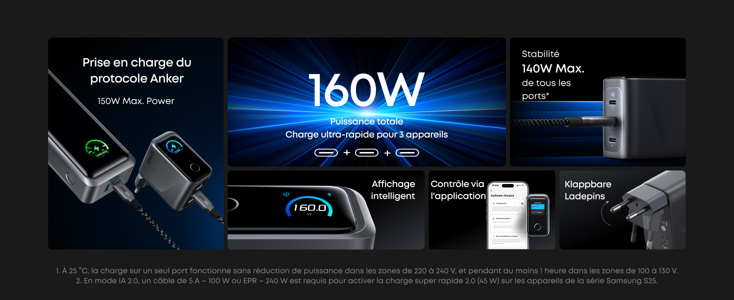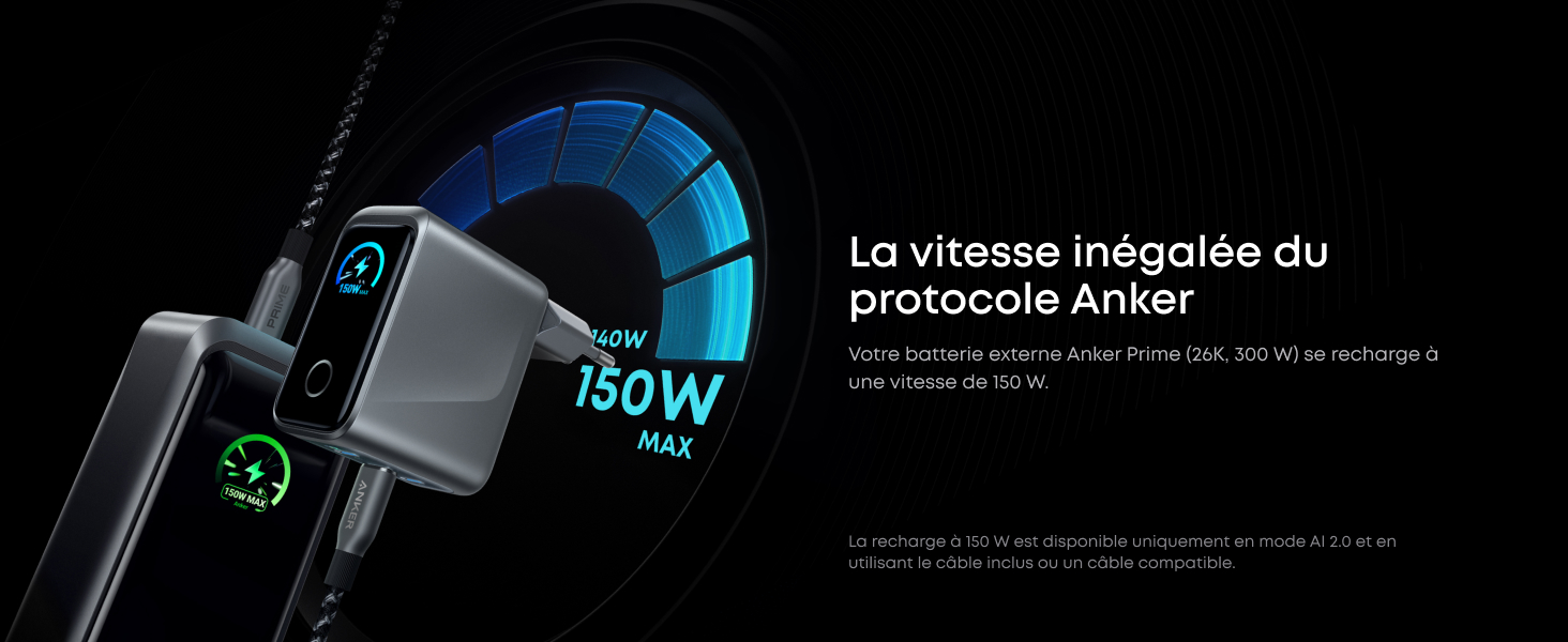 Chargeur Anker Prime (160 W, 3 ports) avec écran