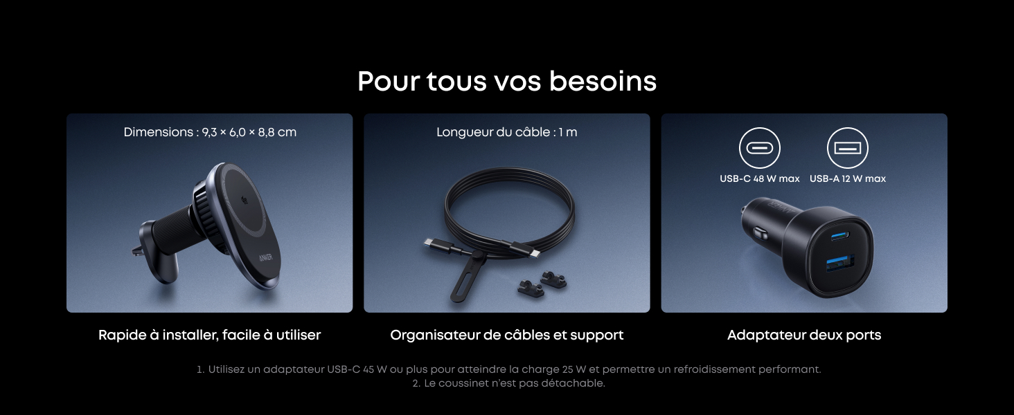 Chargeur sans fil Qi2 Anker Prime, pour port allume-cigare (MagGo, AirCool, Pad)