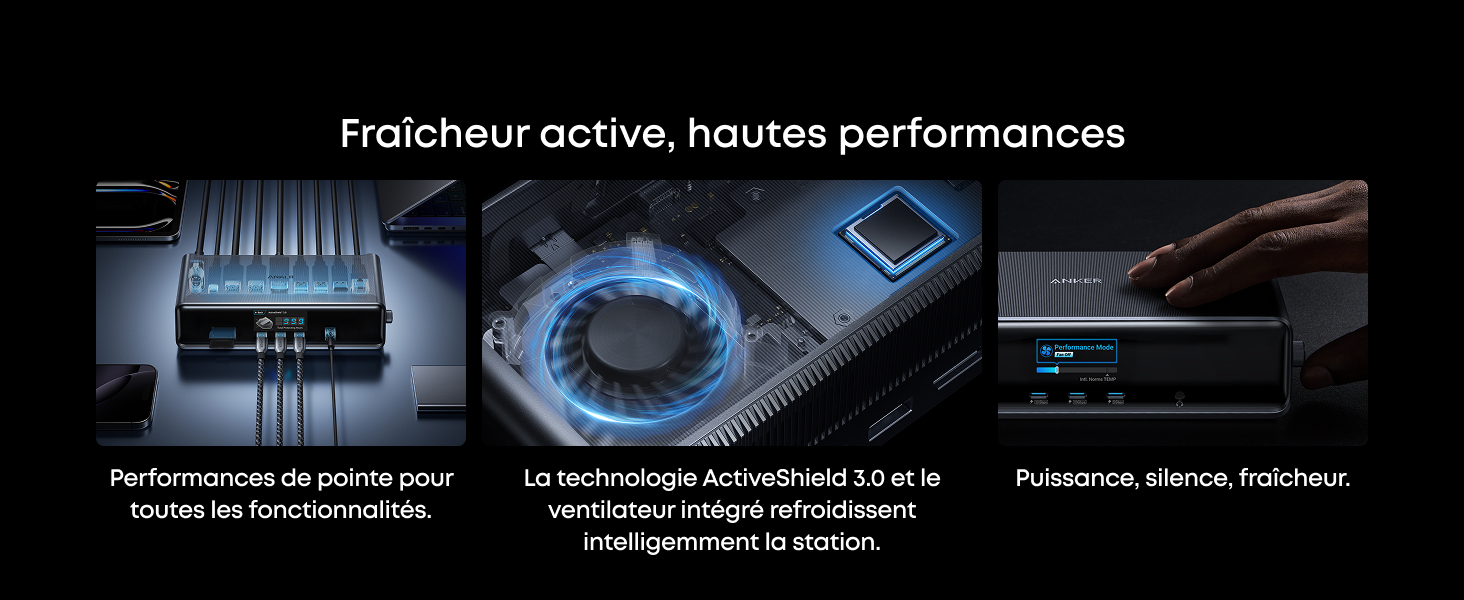Toujours fraîche, toujours en contrôle : Suivez les mises à jour de charge en temps réel, les performances d’affichage, le mode ventilateur et les paramètres directement sur l’écran intelligent. Le ventilateur intégré et la technologie ActiveShield 3.0 permettent à votre appareil de ne pas chauffer et de rester stable.