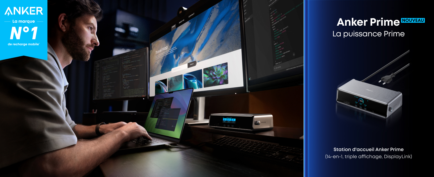 Station d’accueil Anker Prime (14-en-1, triple affichage, DisplayLink)