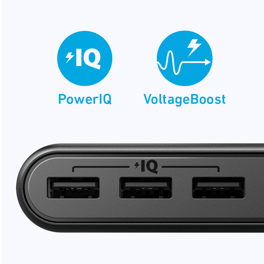 Boasts 3 USB ports equipped with Anker’s exclusive PowerIQ and VoltageBoost technologies for super fast charging.