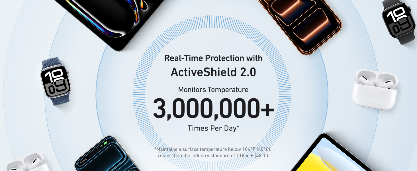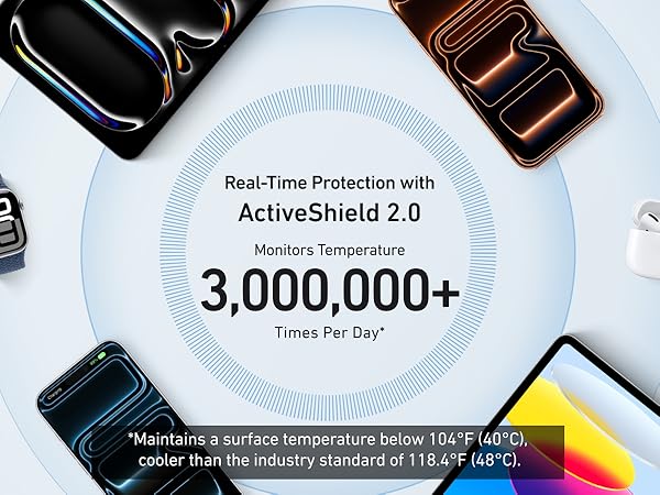 The ActiveShield™ safety system continuously monitors temperatures over 3 million times daily, providing total peace of mind by maintaining operation temperatures below 104°F, significantly cooler compared to the industry standard of 118.4°F.