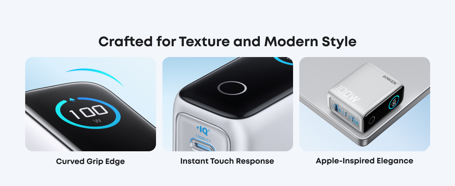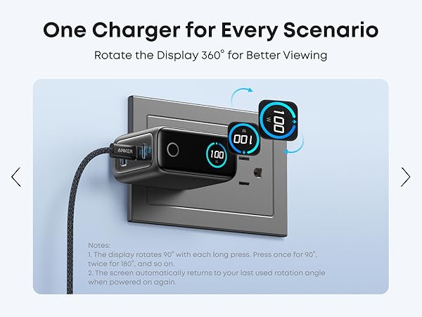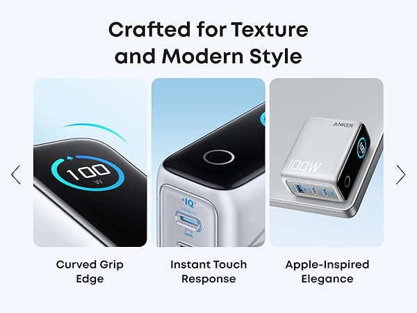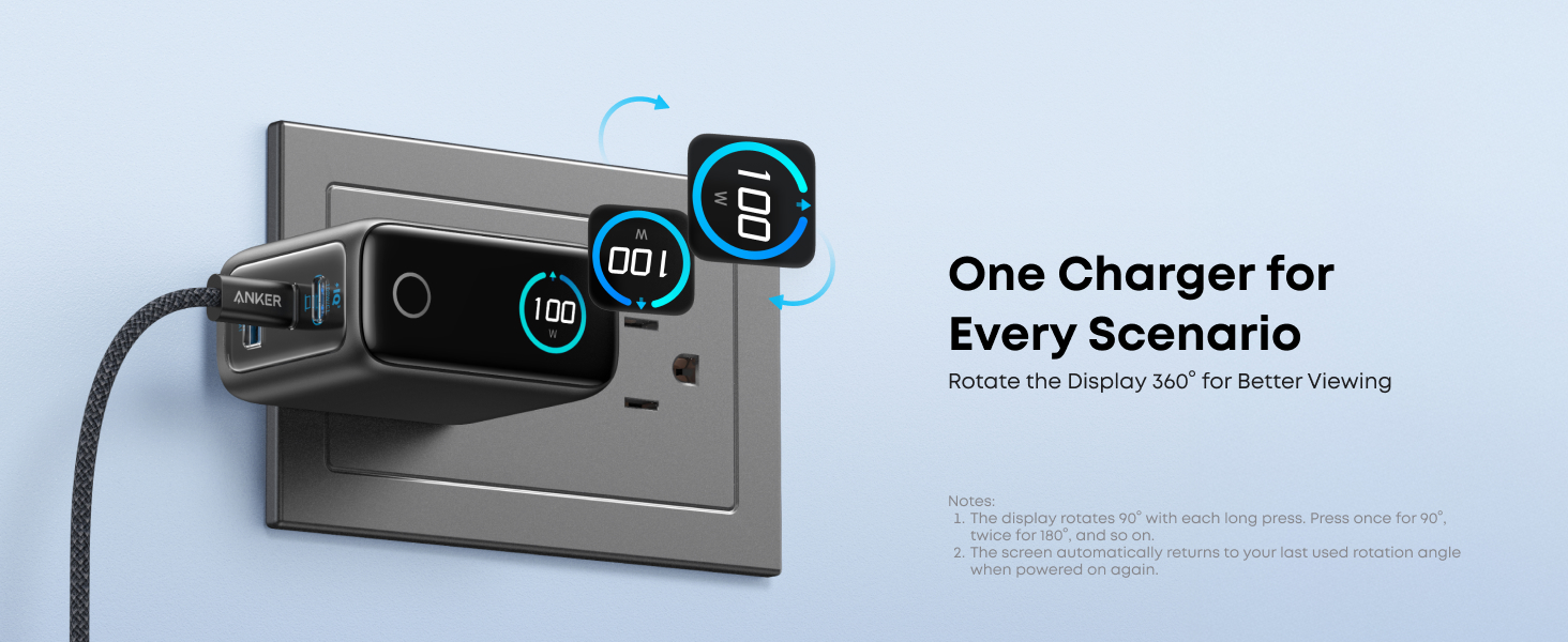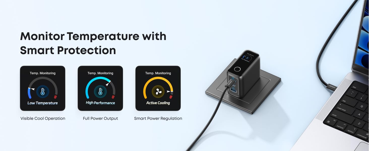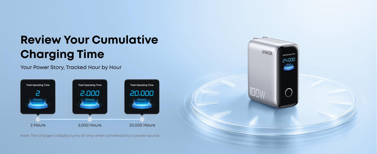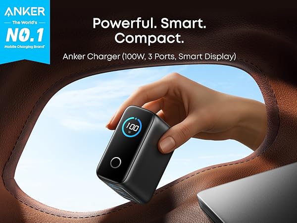 Anker Charger (100W, 3 Ports, Smart Display) with USB-C Cable