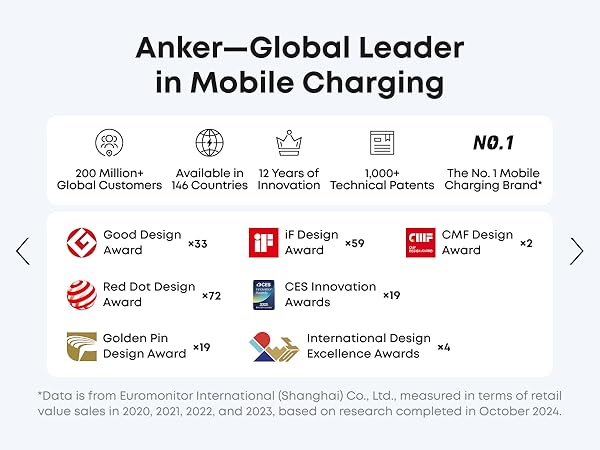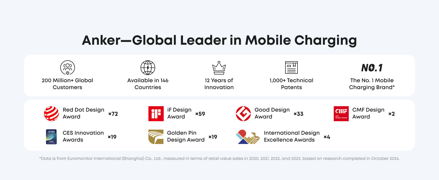 • *Anker is the world's No. 1 mobile charging brand based on retail sales value for five consecutive years: 2020 to 2024.
