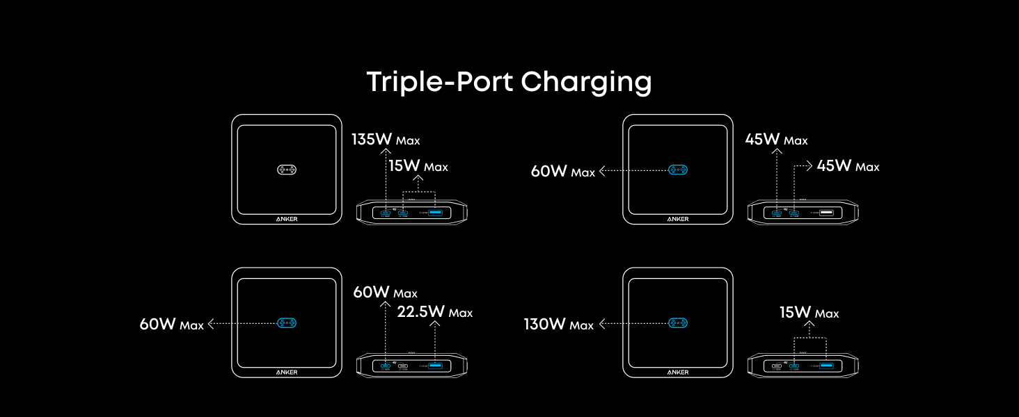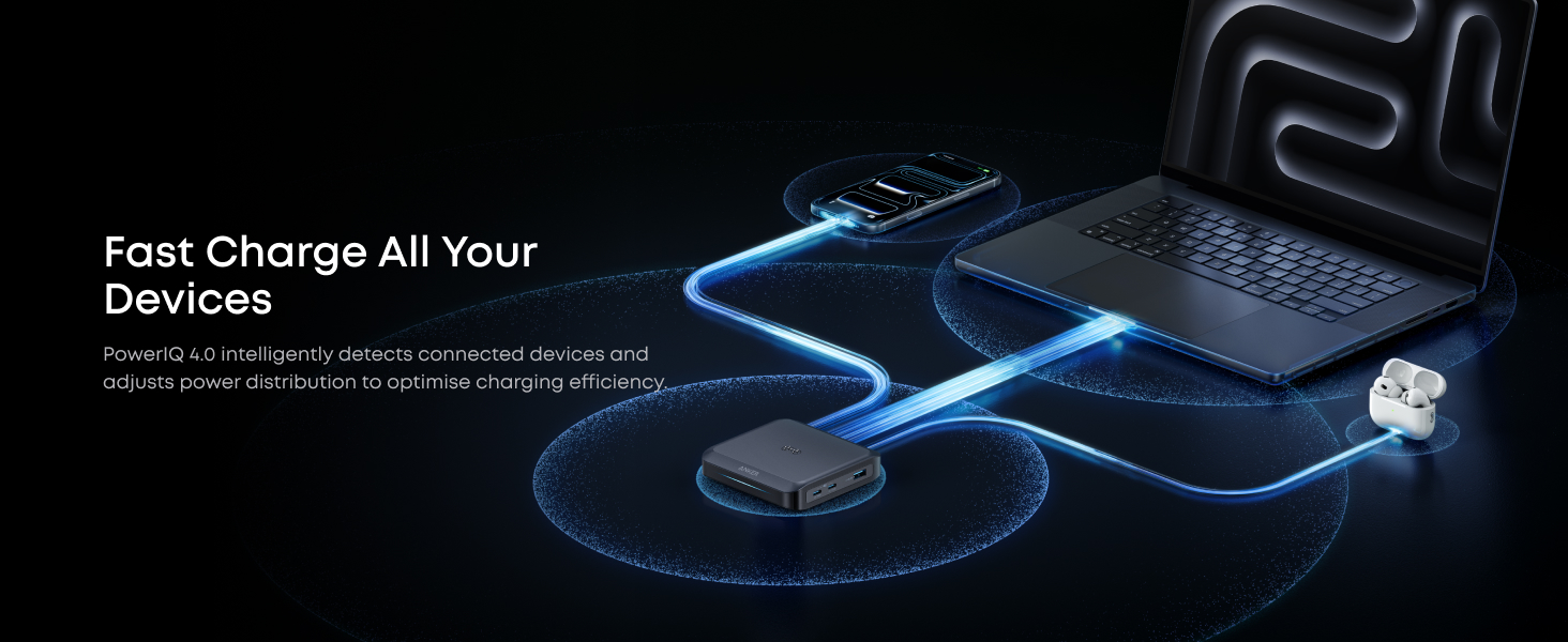 PowerlQ 4.0 technology adapts in real time by intelligently identifying how much output each device needs and allocating the right power to the right ports.